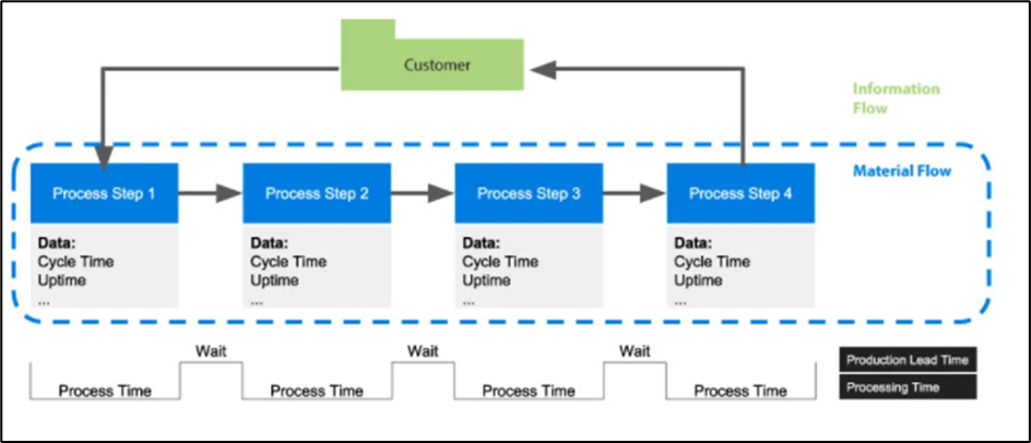VSM 用于衡量业务价值在实现流程中所有活动的流动情况,它清晰地展现了端到端价值流中的瓶颈,并帮助组织确定需要关注和改进的领域。当我们衡量流程的一个子集(如开发人员完成一个“用户故事”所需的时间或将变更部署到生产环境所需的时间)时,可以针对性优化价值流的部分。