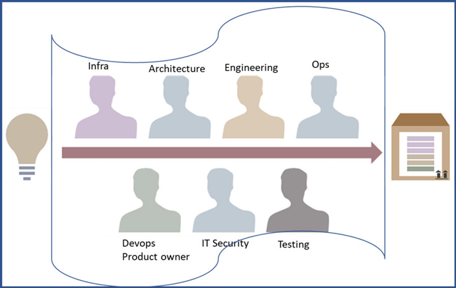 这种职能结构的优点是将员工按照技能知识和明确的角色、职责进行分工,缺点是每个职能部门都可能会变得过于孤立,往往会忽略组织的整体性。但这种孤岛式的结构并不适用于 DevOps。