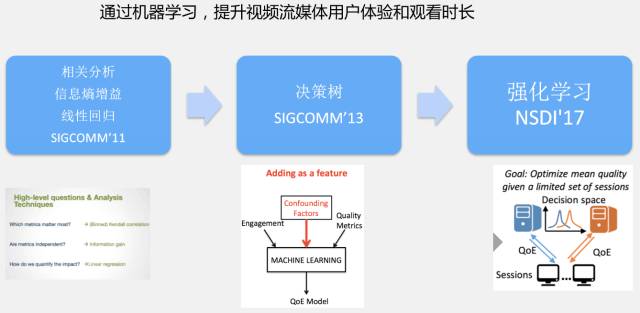 2011 年,他在学术界发表了一篇文章,这一工作比较简单,主要为了提升用户观看流媒体的体验,其中用到了相关分析、线性回归、信息增益等简单算法。