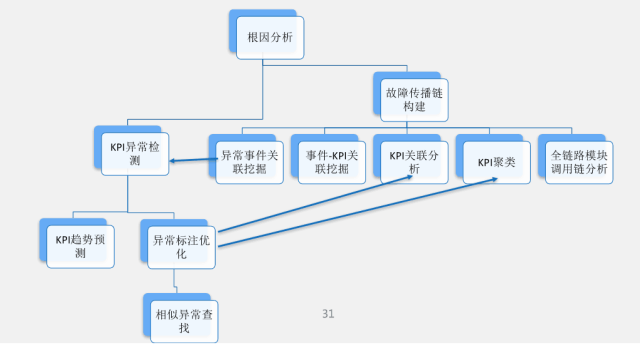 另外,刚才提到的调用关系,即 A 模块调 B 模块,并不代表 A 发生异常就会导致 B 发生异常,而是还有很多其他的因素。 通过机器学习算法挖掘各种关联关系,再辅以模块调用关系链,则构建准确完整的调用关系链就相对比较容易了。