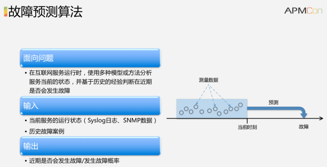 故障预测的应用场景还包括硬盘故障预测、服务器故障预测等,使用到的算法包括隐式马尔科夫模型、支持向量机,随机森林等。