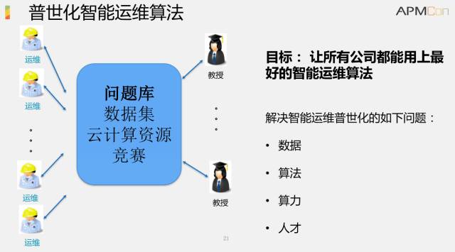 虽然工业界熟悉运维行业和场景,熟悉生产实践中的挑战,也有数据。但是,工业界并不熟悉整个智能运维中最重要的部分——如何把实际问题转化为算法问题(后面会讲到如何把实践中的难题分解成多个算法并逐个解决)。