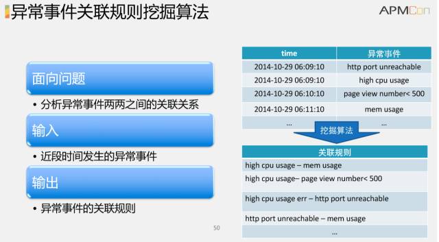 上文提到的 KPI 的关联分析和 KPI 的聚类都可以用上。下面介绍异常事件的关联关系和 KPI 的关联关系挖掘。