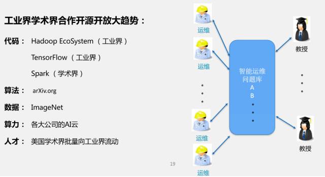 智能运维需要工业界和学术界的密切合作,但是目前仍只限于一对一相对低效的合作,少数公司和少数教授的特权不符合我们大的开源开放的趋势。