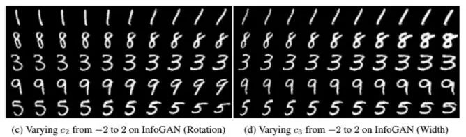 我们在GAN大盘点中聊过infoGAN吗,通过控制隐信息c可以生成特定条件的图像(倾斜更高,宽度更大):