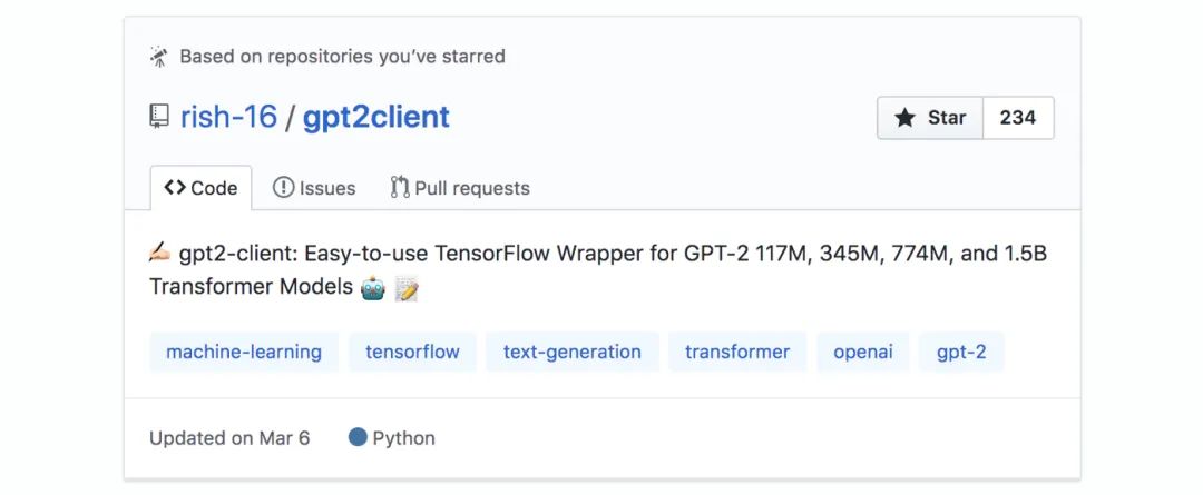 最后,我要说的是,GitHub 的星,能够让一个项目更容易被发现。除去显而易见的事实外,较高的星标数有助于项目脱颖而出,还会影响 GitHub 的推荐。我经常发现新的机器学习项目,那是因为我曾经给类似的项目标过星:
