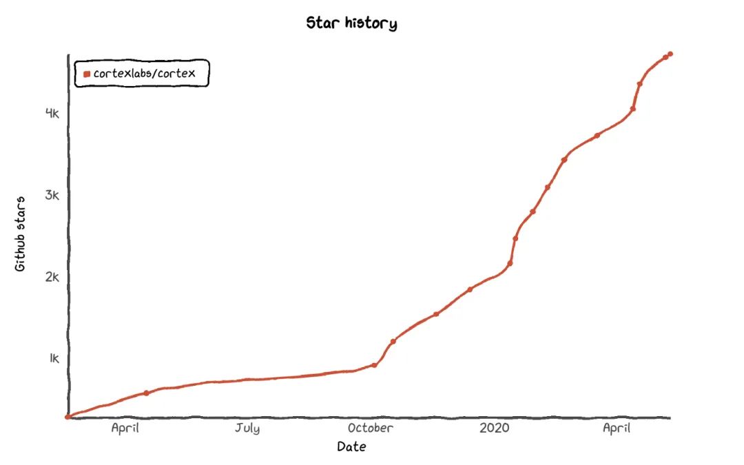 同样,很多 GitHub 用户也会用标星来表示对一个项目的普遍支持,即使他们从未打算使用这个项目。例如,当我们刚推出 Cortex 时,我们收到了很多来自 Go 社区用户标的星,甚至是那些对机器学习不感兴趣的人。这并没有什么不对,我们非常感谢大家的支持,但这只是强化了星与使用量的脱节。