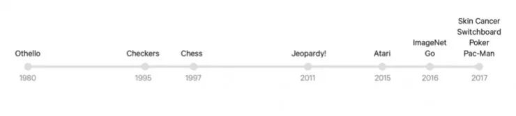 不过虽然拿人类和 AI 系统进行比较有点困难,但是在某些方面,这类比较还是非常有意思的。例如下面罗列的这些 milestones: