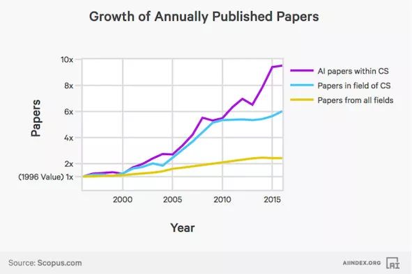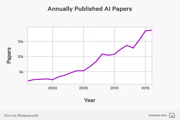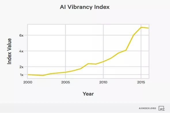 如《AI index 2017 annual report》(链接:http://cdn.aiindex.org/2017-report.pdf)报告中所说: