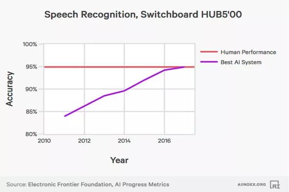 2017 年,微软和 IBM 分别实现了可以媲美于人类的语音识别能力。