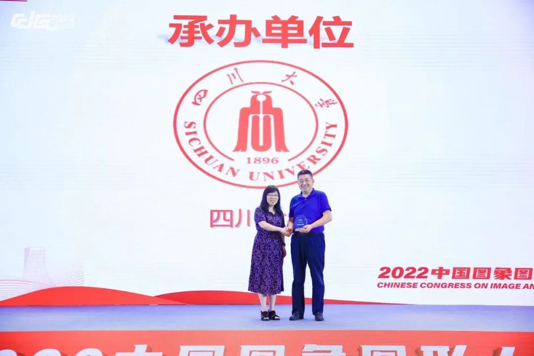 会议组织方感谢牌由大会组织主席马慧敏教授颁发,获奖单位有承办单位四川大学以及协办单位电子科技大学。