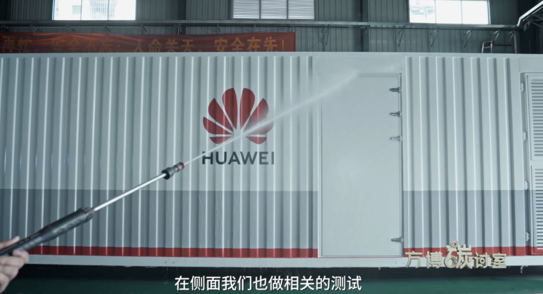 为保证防水效果,东莞华为云数据中心采用了三层防护:液态防水涂料、防水卷材以及严格的出厂防水测试,包括箱体顶部2小时蓄水测试、箱体侧面高压水枪喷射测试。