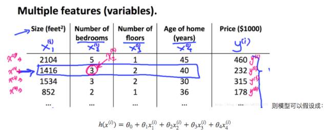 紧接上一篇的例子 – 房价预测。现在我们有更多的特征来预测房价了,“房间的数量”、“楼层”、“房龄”……