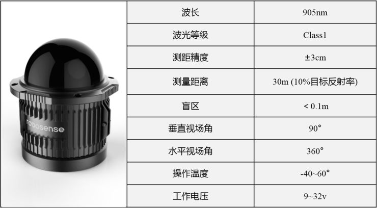 据新智驾了解,RS-Bpearl 拥有 360°×90°的超广视场角,30m(10%) 探测距离,盲区只有 10 厘米。主要用途是安装在无人低速小车的两侧扫除筹边的盲区。