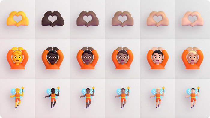 在表情的设计上,微软可是下了很大功夫,根据不同的需求设计出多样性表情,比如不同的人群、宗教和国家。