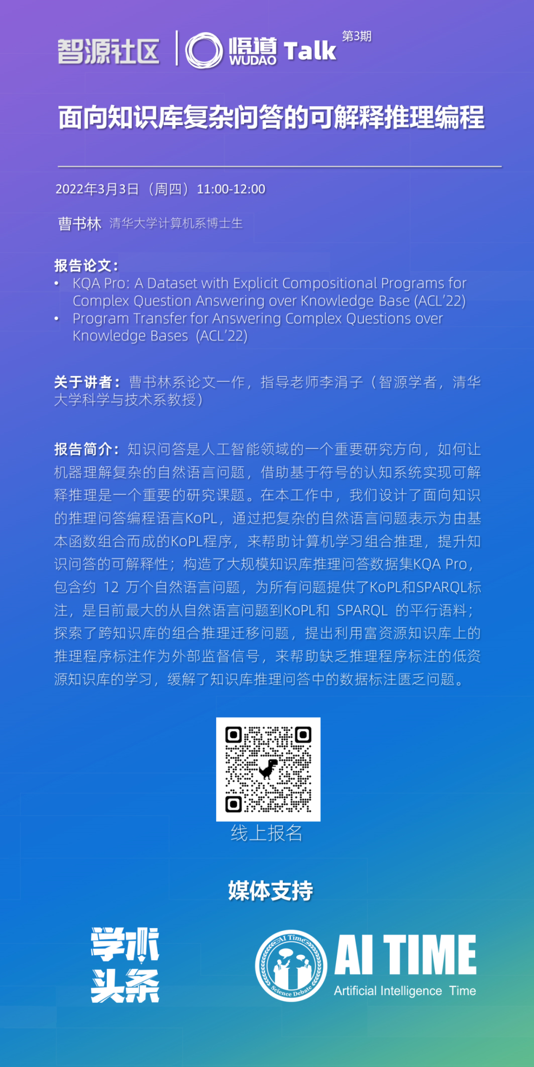 3月3日11:00 悟道Talk丨面向知识库复杂问答的可解释推理编程(ACL`22)