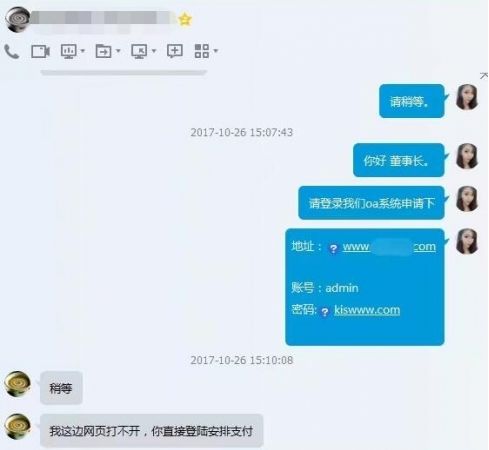某天,一个陌生人加我办公的QQ,说是我们董事长,并让我转告我们财务加他QQ。这种一看就知道是骗子,我不动声色登录了小号,打算套路他一波。我小号加上他以后,开始套路。