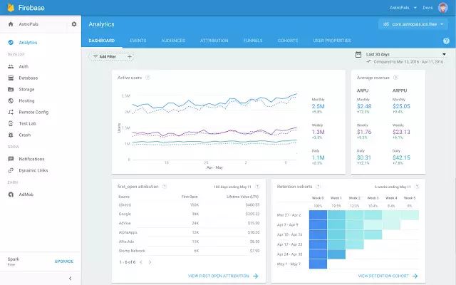 Firebase是一款谷歌应用,适合移动开发者。不仅可以进行手机应用分析,而且还可以在平台上开发应用程序。但Firebase的核心是分析解决方案,它可以让你查看用户行为和跨网络的活动性能。你还可以将原始数据导出到BigQuery,以进行定制查询。