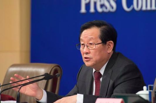 十三届全国人大一次会议新闻中心于3月10日上午10时45分举行记者会,科技部部长万钢、政策法规与监督司司长贺德方、创新发展司司长许倞就“加快建设创新型国家”相关问题回答记者提问。图为科技部部长万钢。中新社记者 李卿 摄