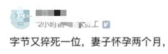 昨晚,网友最先爆料,字节28岁员工因工作猝死,留下了怀孕2个月的妻子,还有未还尽的房贷。