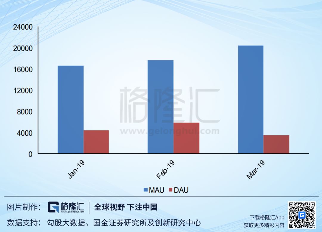 根据国金证券券创新研究中心的监测数据,2019年一季度,《刺激战场》的MAU 呈现稳定的上升趋势,并于3月突破2亿;平均 DAU于2月创下5834万的新高,3月由于寒假结束而有所下降,但是仍然维持在3447万的平均水平。