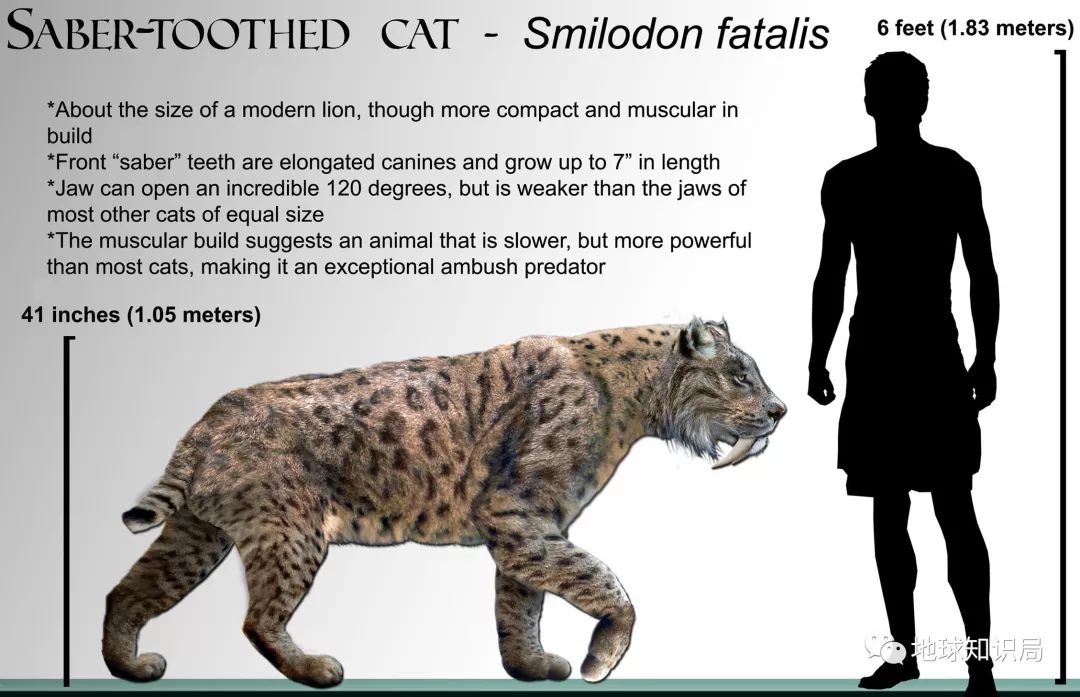 生活在史前北美洲的致命刃齿虎体长2米,肩高1米,体重160至280公斤,和今天的狮子一样大。