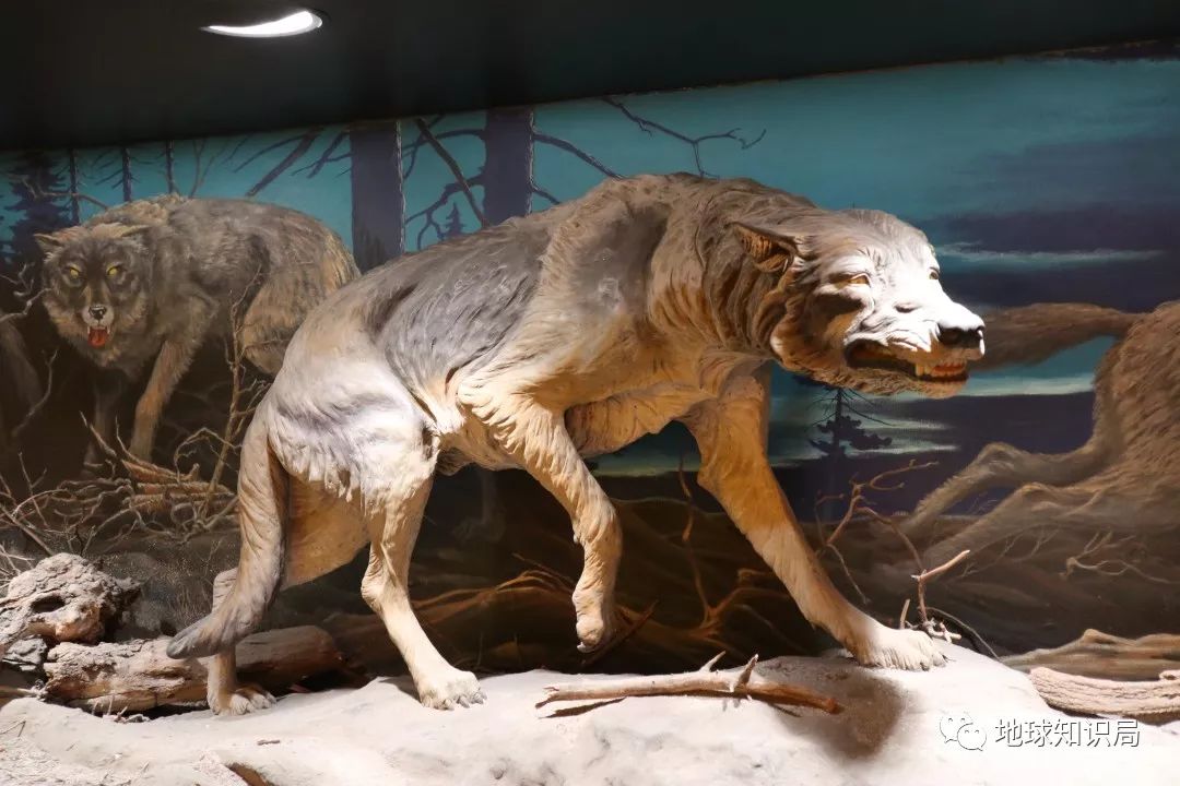 恐狼比最大的灰狼还要大10%,高近1米,平均体重可达68公斤。从外形上看,恐狼似乎与灰狼没什么两样,其实它的脑袋更大,骨骼更强壮。恐狼的数量非常多,古生物学家在一个化石点就发现了超过3600只恐狼的骨骼,它们是史前北美洲最常见的大型食肉动物。