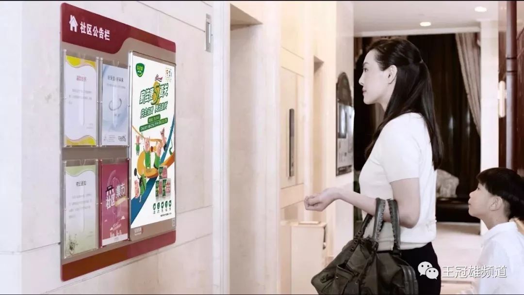 社区住宅楼宇广告和电梯口无疑成为了一个绝妙的选择。因为触达的核心群体是家庭人群,楼宇内的公告栏是用户会去主动获取信息的广告载体,顺便就会看到广告。而电梯口则可以直接覆盖一整栋中高端物业的人群,恰恰是主导家庭消费决策的核心。