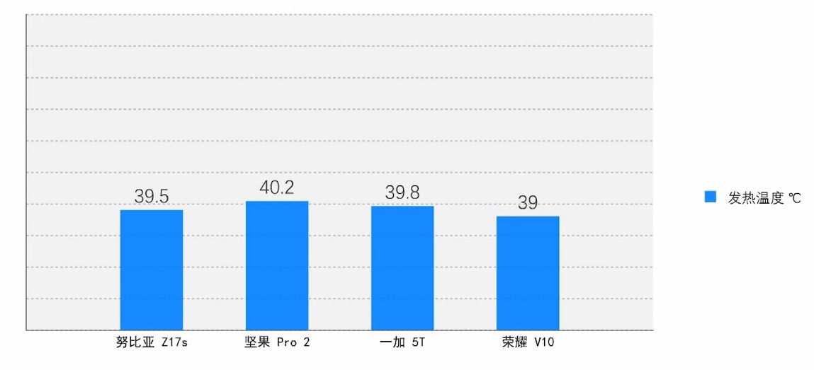 在发热最高的录像环节,我们使用温枪测量4台机器的温度,最高的坚果Pro 2只有40.2℃,其他机器更是没到40℃,发热控制非常理想。