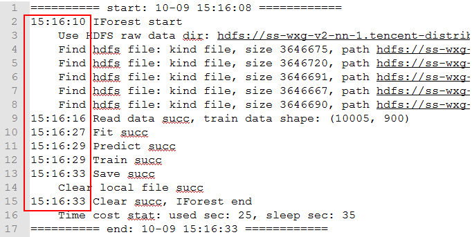解决性能问题的第一步是要知道性能瓶颈在哪里,抽样发现主要是加载数据和训练模型耗时较多,预测异常和上报结果的耗时并没有随数据量的增加而快速上涨。