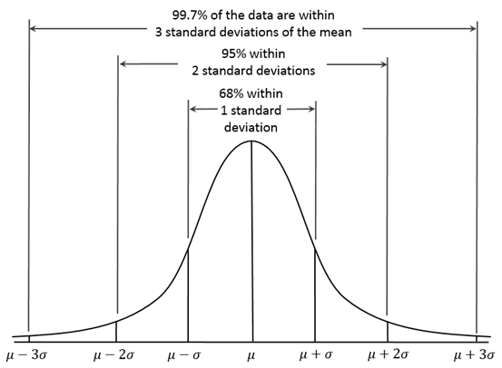 然后尝试其他模型。通过搜索发现,有一类ML模型专门用于异常检测,找到了Andrew Ng介绍的基于高斯分布的异常检测算法:https://www.coursera.org/learn/machine-learning/home/week/9 。高斯分布如下图所示:
