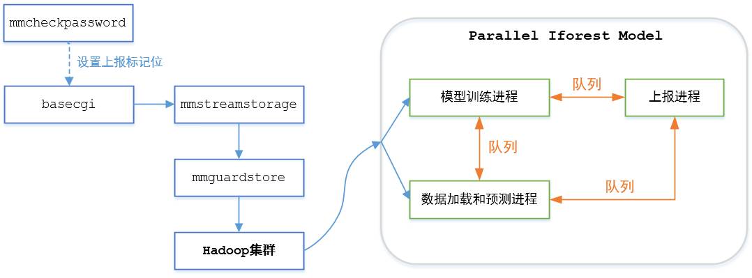 2,mmguardstore做完数据清洗和特征提取,然后把样本数据落地,最后利用crontab定期将该数据同步到Hadoop集群中。