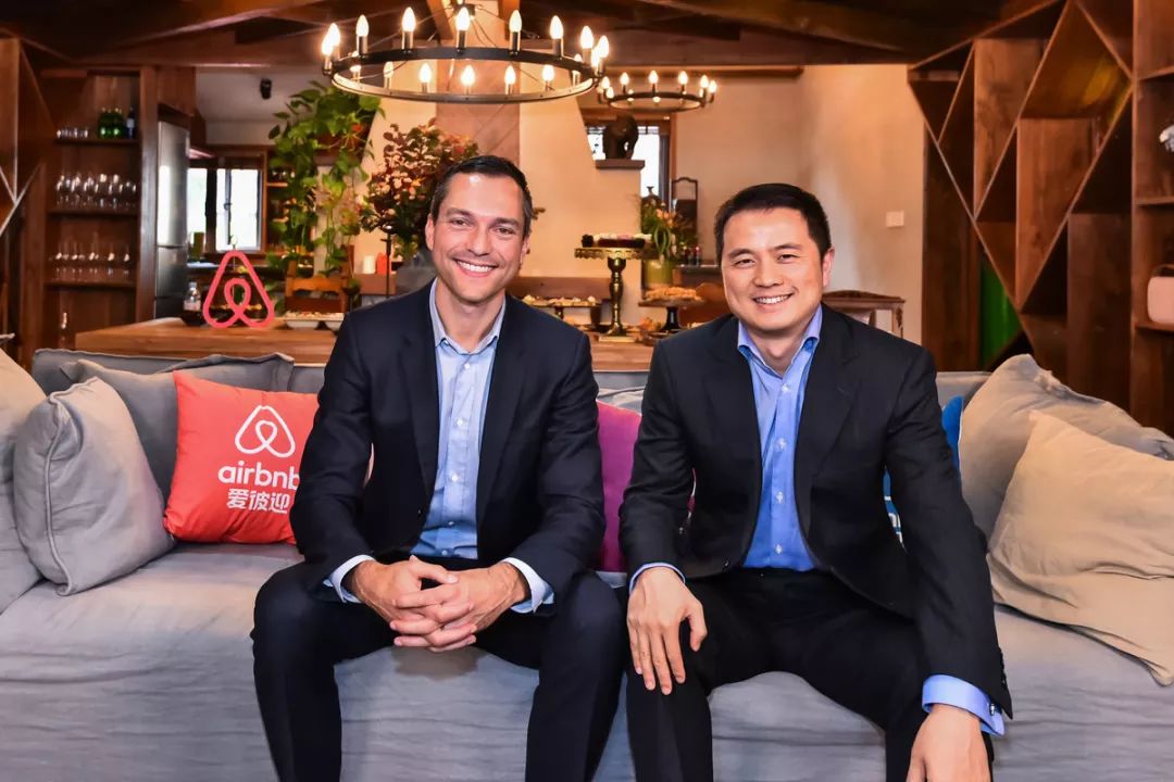 Airbnb联合创始人、中国区主席柏思齐(左),Airbnb中国区总裁彭韬