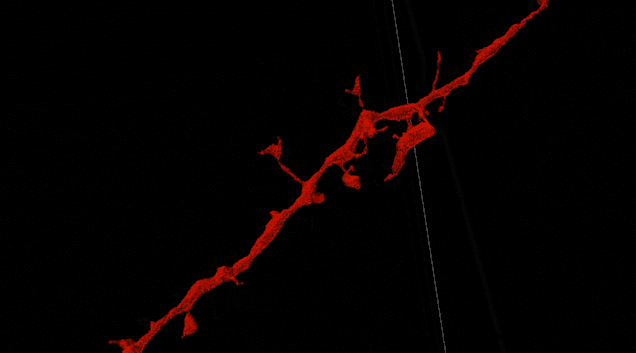 图为我们的算法正在跟踪鸣禽大脑中的一个神经突触