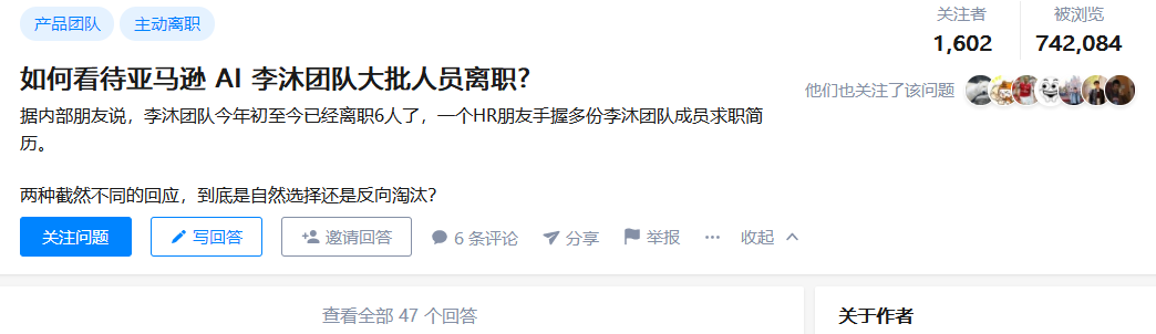AI 科技评论消息:昨日,据知乎网友爆料,亚马逊AI李沐团队今年初至今已经离开6人了。考虑到李沐团队一共20名正式员工,以及一个研究团队招新的严格要求和团队培养成本,6人离去对于一个团队来说确实是一种重大的人员流失。