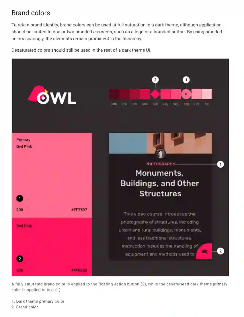 <FloatingActionButton … app:backgroundTint="@color/owl_pink_500"/>