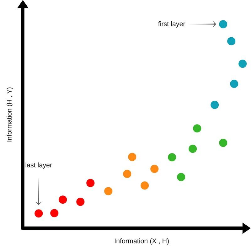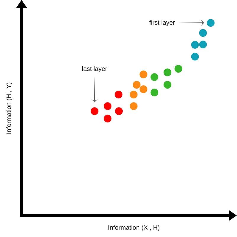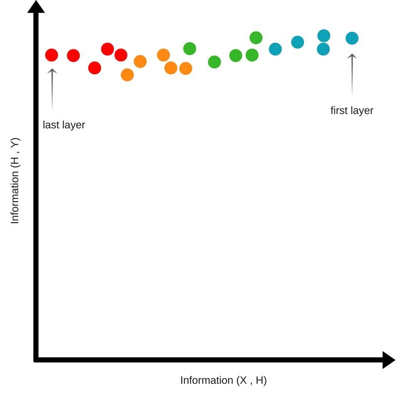 这说明经过连续的隐层后,神经网络丢失了一些输入信息,并且保留到最后一个隐层的内容是关于输出的最低熵信息。