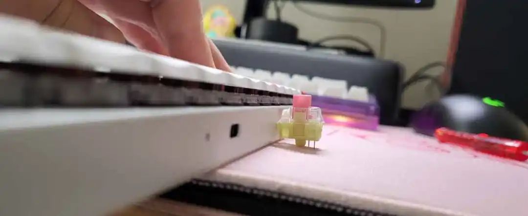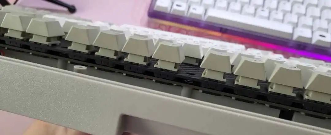对于线性轴来说,它的声音就几乎全部来自轴心触底和回弹触顶的声音。如果放置在有金属定位板的键盘上,这种声音会更加响亮。