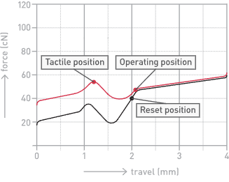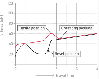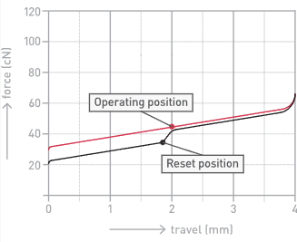 Cherry MX Red 压力曲线与轴体示意,图源:cherrymx.de