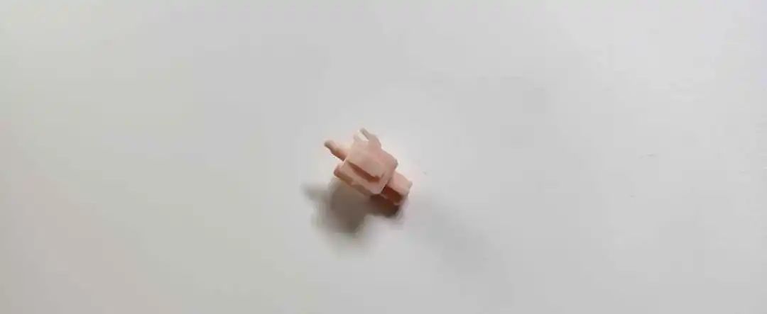 我们去拆开一个机械轴体拿出轴心,你会发现轴心面对弹片的部分会伸出两个凸起的小脚,在所有类 MX 轴体当中,你都会看到这样的两个小脚。它有可能是直线的,看起来像是一架梯子;它也有可能是 S 形,你会看到中间有一个小小的山丘样突起;它也有可能是两部分,把两部分合起来时,看起来和 S 形的那种基本一致。这就是不同种类的轴体手感的来源。