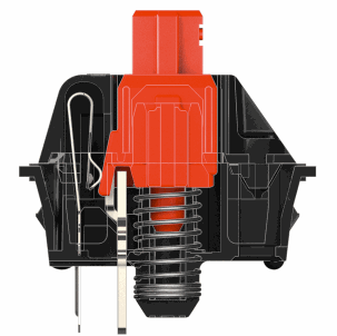 线性轴则是看起来最为平庸的一类轴体。从开始按下到触底的过程中,压力是均匀上升的,与按键行程成正相关。但正因为它的手感直上直下,在使用的过程中出问题的概率也最小。但需要注意的是,使用搭载了线性轴的键盘并不代表不会发出声音,因为键盘是一个整体,并不能只看单个轴体的声音状况。尤其是常见的使用了不锈钢定位板的公模机械键盘,击打线性轴的声音也不容忽视。具有代表性的轴体就是 Cherry MX Red 樱桃红轴与 Cherry MX Black 樱桃黑轴。对于一般的出厂状态线性轴来说,二者的手感差异主要在于弹簧的力度大小、长度、匝数等等这些中学物理学过的内容。