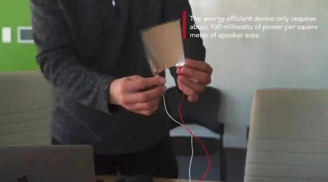 这种薄膜扬声器需要的能量仅为传统扬声器所需能量的一小部分,但却能够产生极小失真的高品质声音。根据研究团队的演示,手掌大小的扬声器,重量仅为一角硬币,而且无论该薄膜粘合到什么表面,都可以产生高质量的声音。