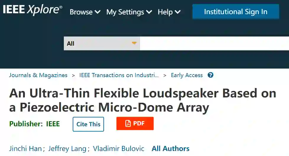 「看起来像一张薄薄的纸,在上面贴上两个夹子,将它插入电脑的耳机端口,然后开始听到它发出的声音,感觉很了不起。它可以在任何地方使用,只需要一个运行它的电力。」研究论文通讯作者、MIT.nano 主任、有机和纳米结构电子实验室(ONE Lab)的负责人 Vladimir Bolović 说。