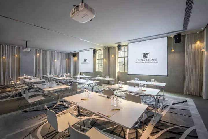 此外,酒店内也不乏对于新兴科技的独创式运用,新加坡最大的内嵌式液晶显示墙便坐落在酒店内部,尺寸达10米 x 15米。15间会议室位于古迹建筑Assembly内,另外两间活动及会议室则位于NCO大楼和Ebb6内,布置风格简约现代,为中小型会议和头脑风暴提供完美场所。