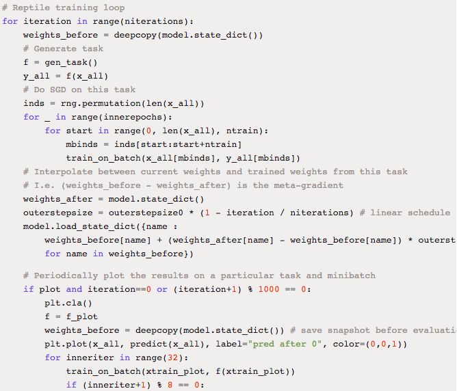 GitHub 上有实现 Reptile 的详细说明 https://github.com/openai/supervised-reptile。
