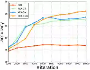 图 7:在不同训练集上对应迭代次数的识别准确度
