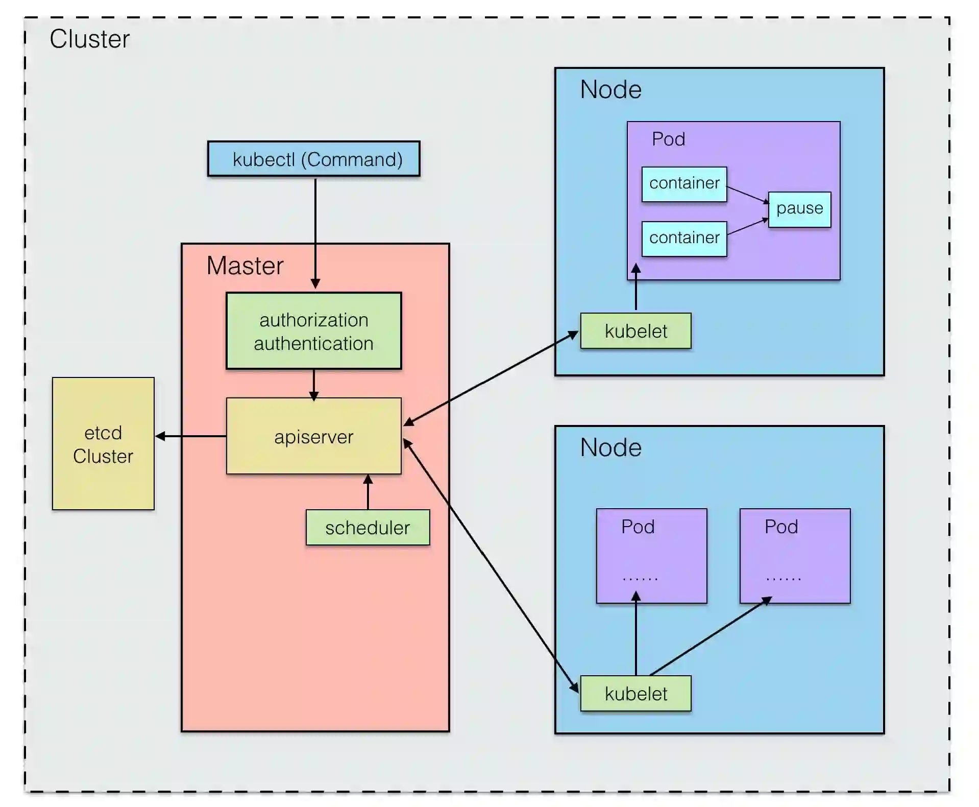 外部用户可以通过 REST 接口,或者 kubectl 命令行工具进行集群管理,其内在都是与 apiserver 进行通信。