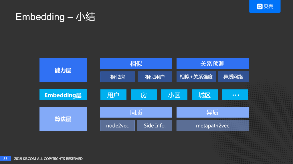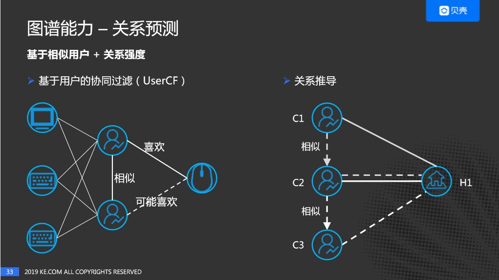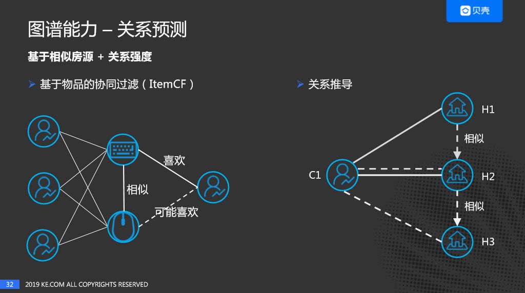 在能力层可以做相似,如相似房,相似用户;同时,可以做关系预测,一个是基于相似+关系强度,一个是基于异质网络。
