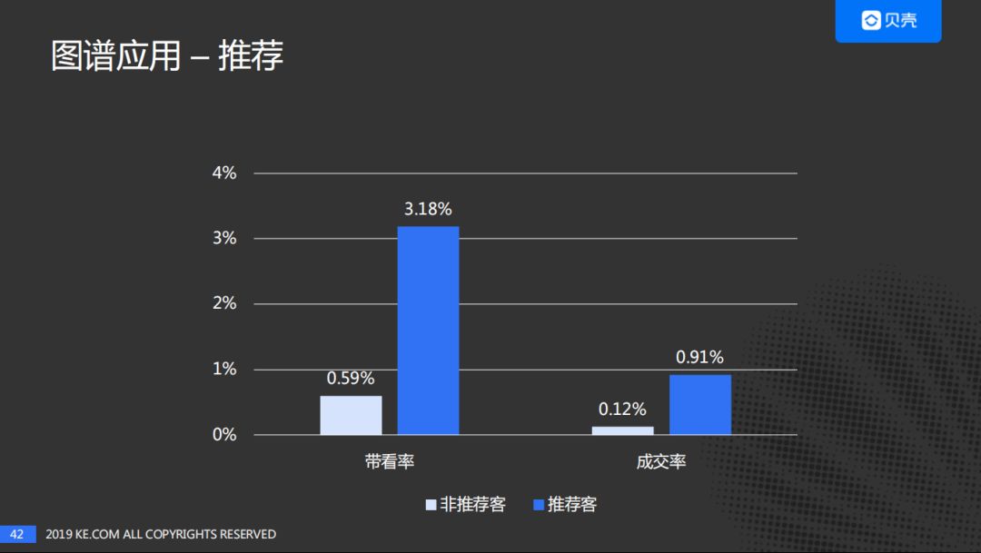 以房客通项目为例:当某个用户经常浏览关注或者咨询某个房源时,房源的维护人A1和客户的维护人A2。A1会邀请A2带着客户来带看房源,这是一个三度查询的示例。产品上线之后,采纳率提升了20%。
