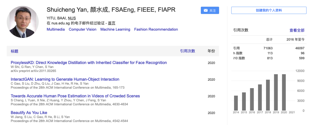 颜水成博士是 IEEE Fellow、IAPR Fellow、ACM 杰出科学家,主要研究领域为计算机视觉、机器学习和多媒体分析,迄今在国际顶级期刊及会议共发表 600 余篇论文,引用量超过 7.1 万次,H-index 为 98。2014、2015、2016 、2018 和 2019 年,他五次当选「汤森路透全球高被引学者」。